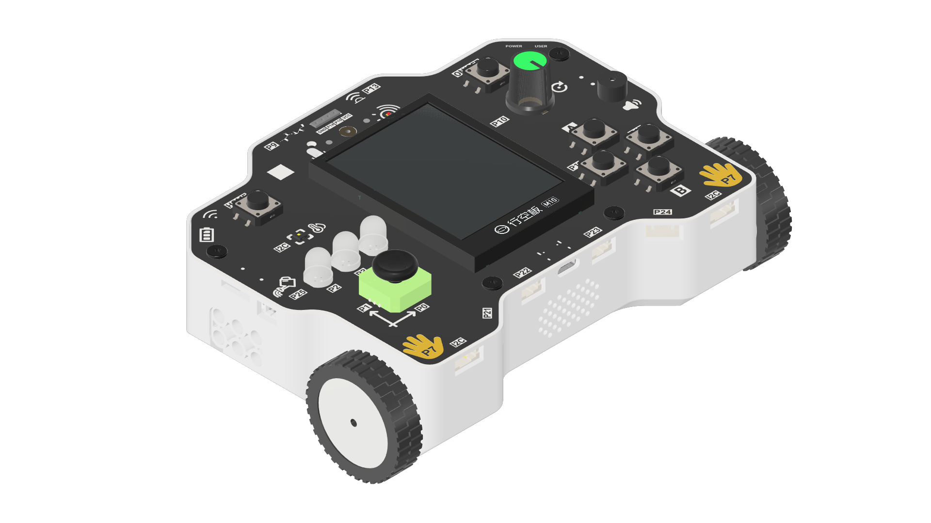 | 红黄绿LED灯 | 引脚:红灯P2;黄灯P3;绿灯P4输出类型:高低电平红灯和黄灯支持PWM控制 |